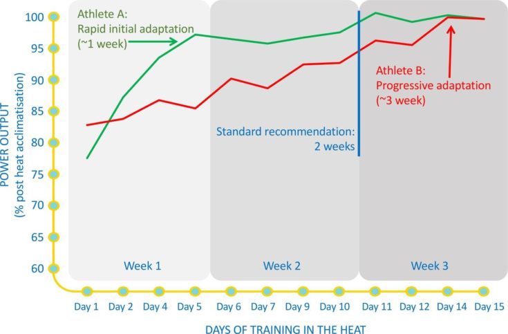 To compete in heat adaptation, countermeasures must be taken (Racinais et al., 2015). However, while 61% of elite cyclists responding to the questionnaire described prior exposure to heat before a world championship, only 38% were reported to have an acclimation protocol in place (Racinais et al. 2020).![heat2[1]](https://hercme.com/wp-content/uploads/2023/10/heat21.jpg)